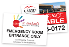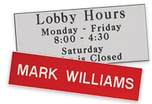 Choose from full-color outdoor, full-color indoor, engraved or vinyl signs.